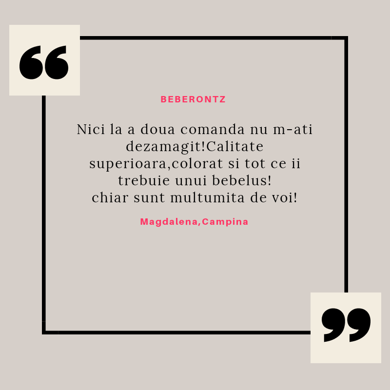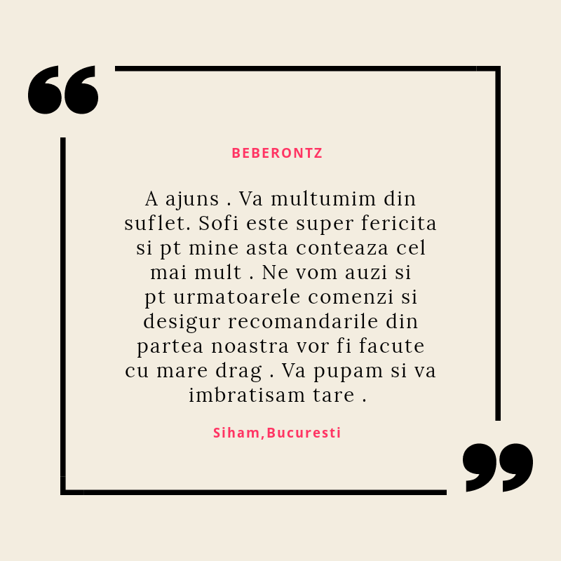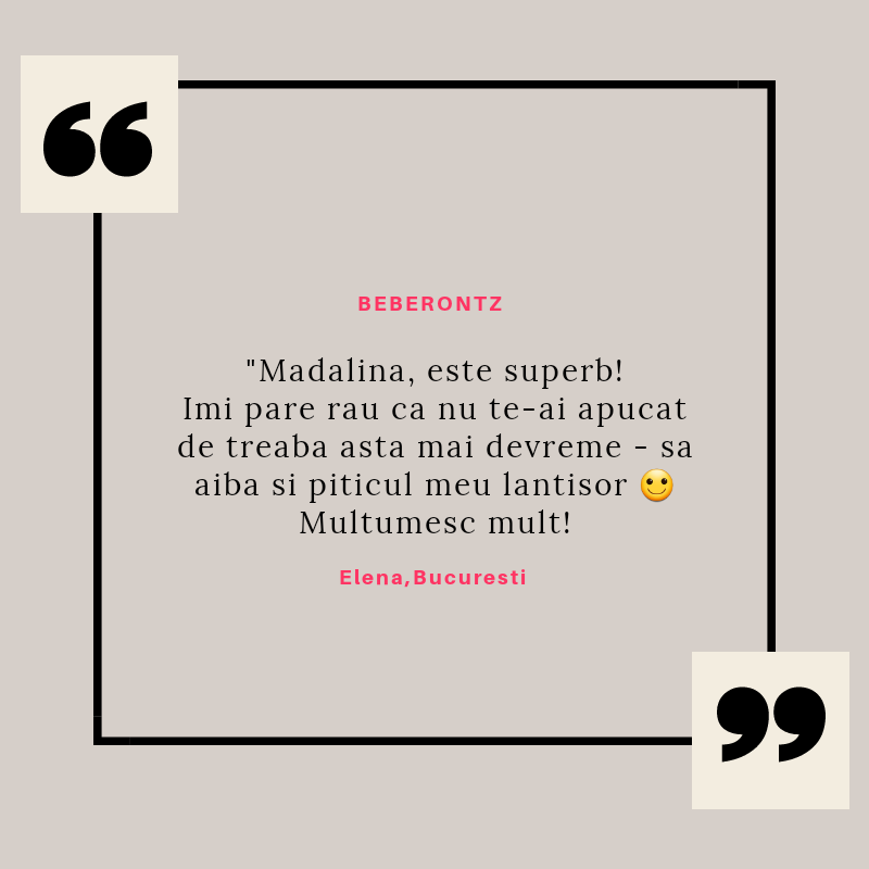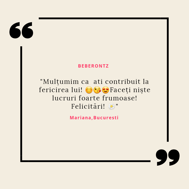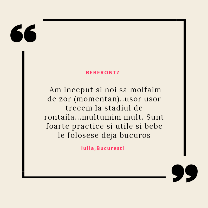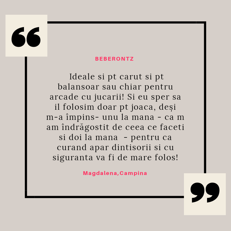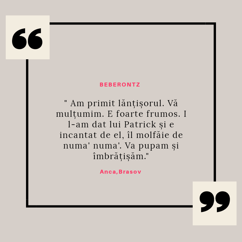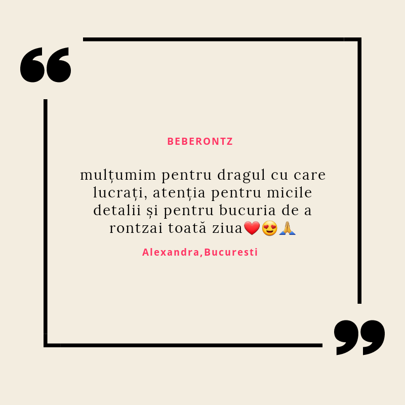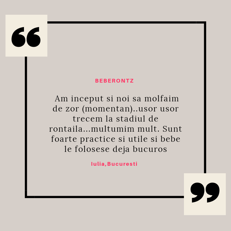 Beberontz s-a născut din iubirea pentru copii și din dorința de a le fi alături într-una din cele mai provocatoare perioade din viață lor și a părinților lor: cea a erupției dentare. Știu cât de multe resurse sunt necesare în această perioadă și mi-am propus să vin în întâmpinarea părinților cu produse de calitate, care să le ușureze misiunea și să le ofere bebelușilor alinarea de care au nevoie.